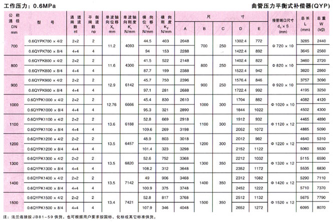曲管壓力平衡式補償器(QYP)技術參數