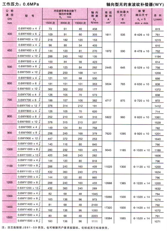 無(wú)約束波紋補(bǔ)償器(WY)參數(shù)2