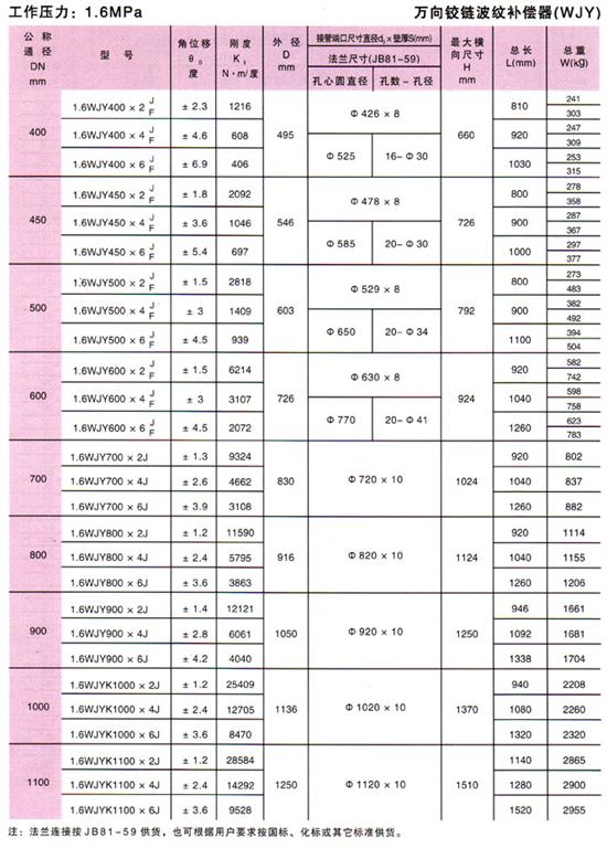 萬向鉸鏈波紋補(bǔ)償器(WJY)參數(shù)7