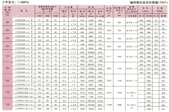 軸向型內壓式波紋補償器(TNY)參數10