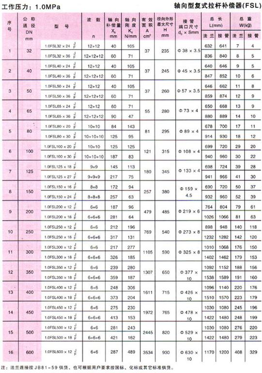 軸向型復(fù)式拉桿波紋補償器(FSL型)參數(shù)2