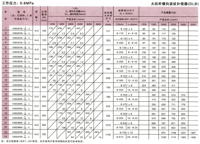 大拉桿橫向波紋補償器(DLB)參數(shù)1