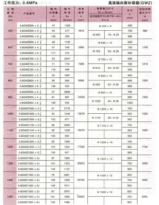 鋼鐵水泥行業(yè)高溫波紋補償器參數(shù)3