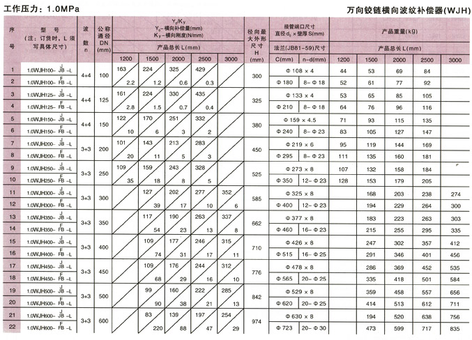 萬向鉸鏈橫向波紋補償器(WJH)產品參數3