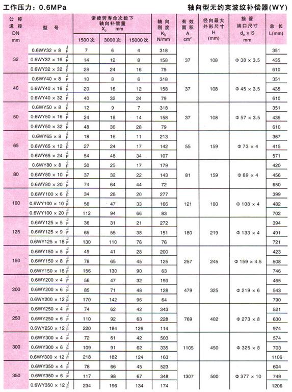 無約束波紋補償器(WY)參數1