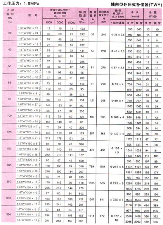 軸向型外壓式波紋補償器(TWY)參數5
