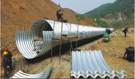 鋼制波紋涵管,是指鋪埋在公路、鐵路下的涵洞用螺紋波紋管,它是由波形金屬板卷制成或用半圓波形鋼片拼制成的圓形波紋管。廣泛應(yīng)用于公路、鐵路、小橋、通道、擋土墻以及各種礦場(chǎng)巷道擋墻支護(hù)等工程中的涵洞(管)。